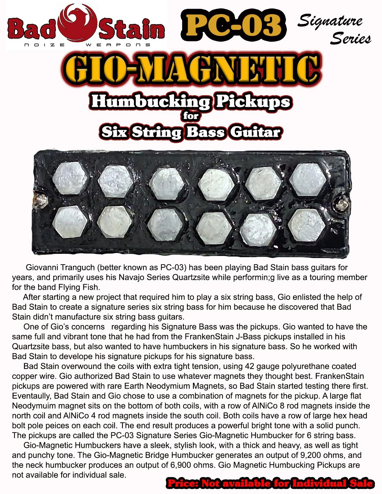 PC-03 Signature Gio-Magnetic Humbucking Pickups for Six String Bass Guitars
